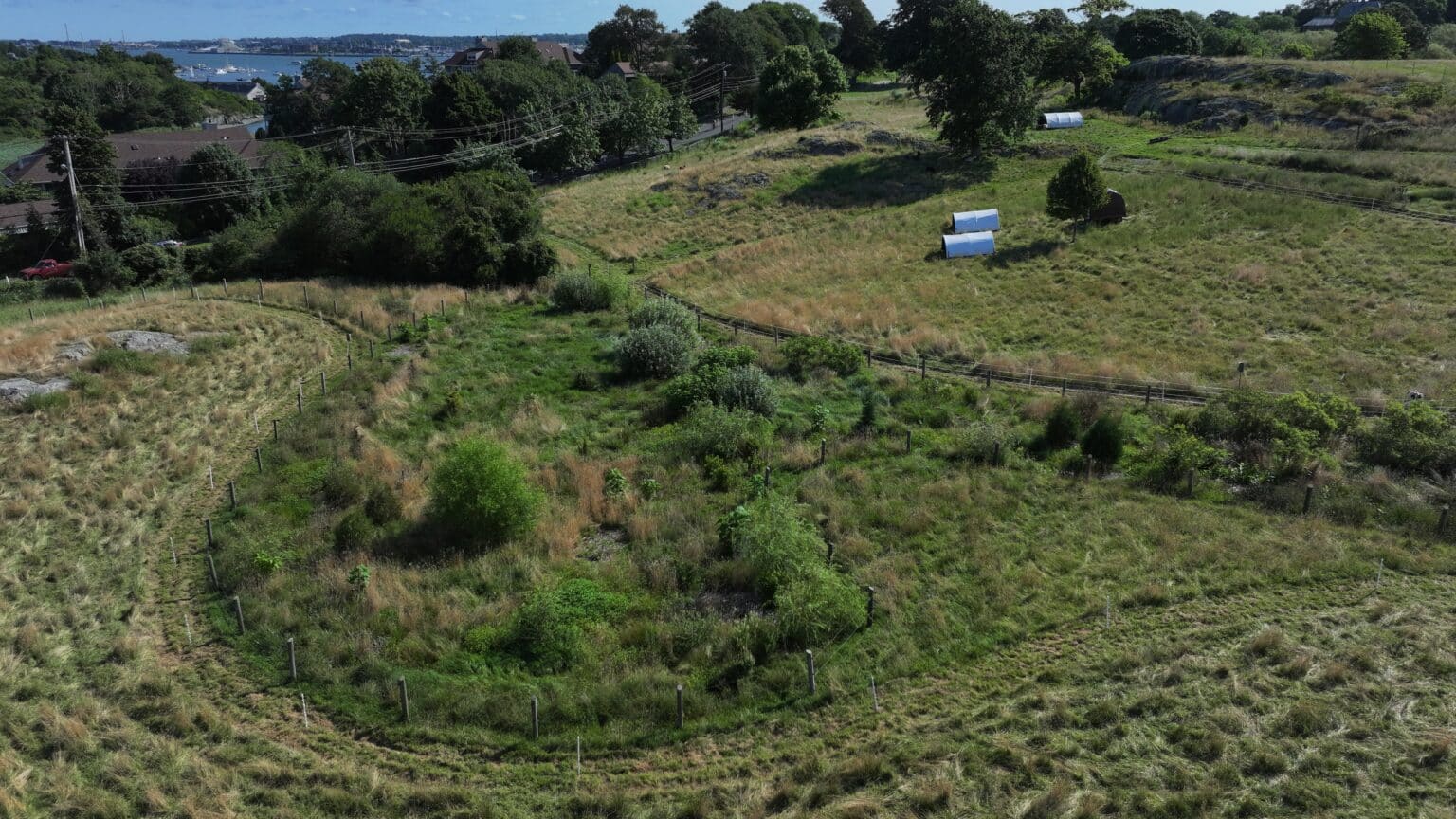 A watershed is an area of land that drains water from its highest points down to its lowest. Watersheds can be very small, like an inland stream draining to a lake, and they can also be enormous. Ocean Hour Farm sits in the Narragansett Bay Watershed, which covers most of Rhode Island, southeastern Massachusetts, and a small part of Connecticut.